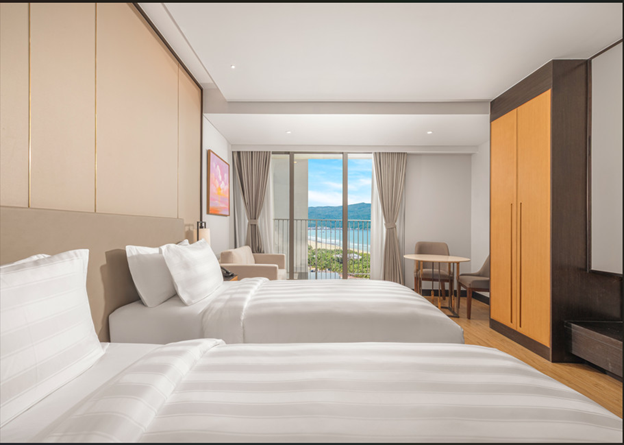 ダナン市内中心部に位置しているため、ドラゴン橋やハン川橋、ソンチャー半島などの人気観光スポットへも車で数分でアクセス可能です。賑やかなエリアにありながら、館内は静かで落ち着いた空間が広がり、開放感のある設計と自然光を取り入れた空間づくりにより、リラックスできる滞在をお楽しみいただけます。