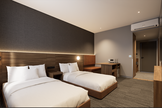 客室は日本スタイルを取り入れたシンプルで機能的なデザインとなっており、快適にお過ごしいただけます。各部屋には、ベッド、薄型テレビ、無料Wi-Fi、ミニバー、バスルームなどの設備が整っております。客室タイプはDeluxe、Premier、Studio、Suiteなどがあり、さまざまな滞在ニーズに対応しております。