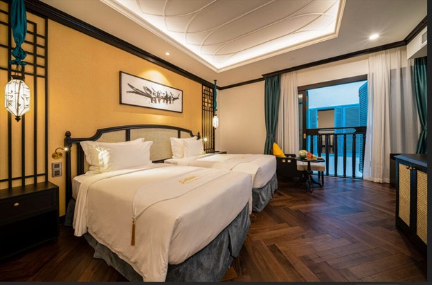 ポティーク・ホテル・ニャチャン(Potique Hotel Nha Trang)は、市内中心部に位置し、ビーチや主要な施設への移動に便利な立地にありながら、過度ににぎやかなエリアからは少し離れています。そのため、滞在中は落ち着いた環境が保たれ、休息の時間を確保しやすいのが特徴です。ロビーに入ると、インドシナ様式を基調とした建築とインテリアが統一されており、落ち着いた色合いと柔らかな照明によって、温かみのある空間が広がります。館内全体の雰囲気は穏やかで、各エリア間の移動もスムーズなため、複数泊の滞在にも適しています。