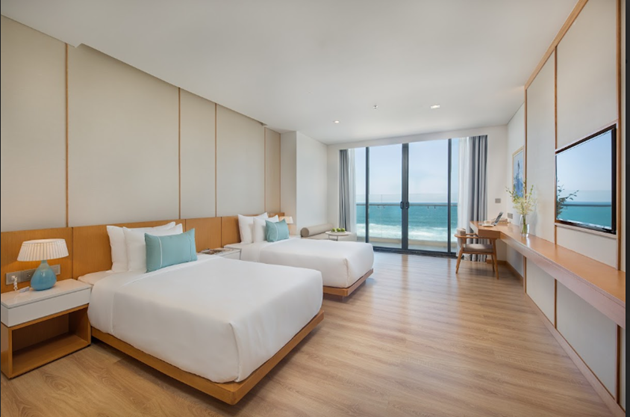 TMS ダナン ビーチ ホテルは、ミーケービーチ沿いのリゾートホテルで、モダンな建築と美しいオーシャンビューが特徴です。ファミリーやカップルに最適です。