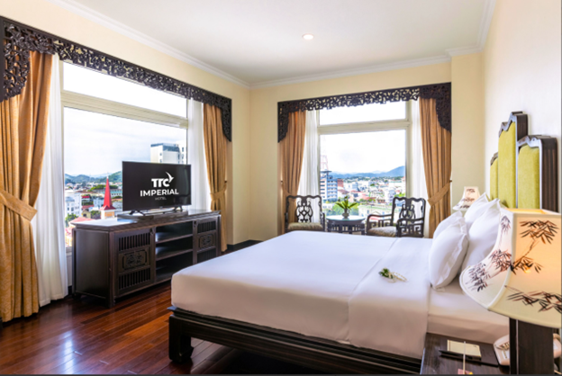 TTC インペリアル フエ ホテルは、フランスコロニアルとアジアの要素を融合した5つ星ホテルで、王室のようなラグジュアリーな体験を提供します。