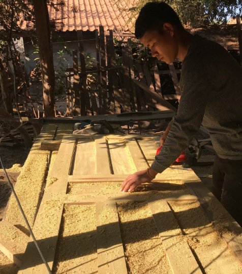 次は天井を作るための木を数えて、その後、建材の店へ・・・