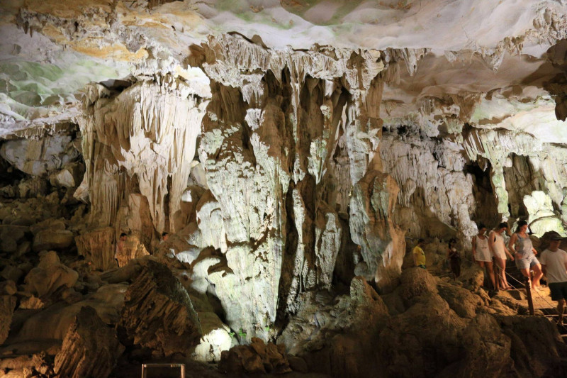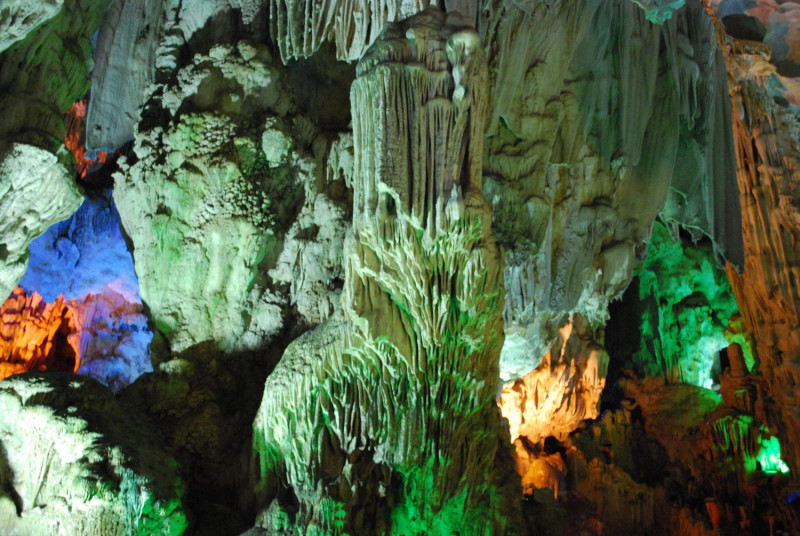 数万年かけて成長した鍾乳石が美しい、ティエンクン鍾乳洞。水面から突き出る奇岩や鍾乳石から滴る水滴、石灰岩で固められた壁面など、洞内に広がる色彩豊かなライトアップは圧巻です。