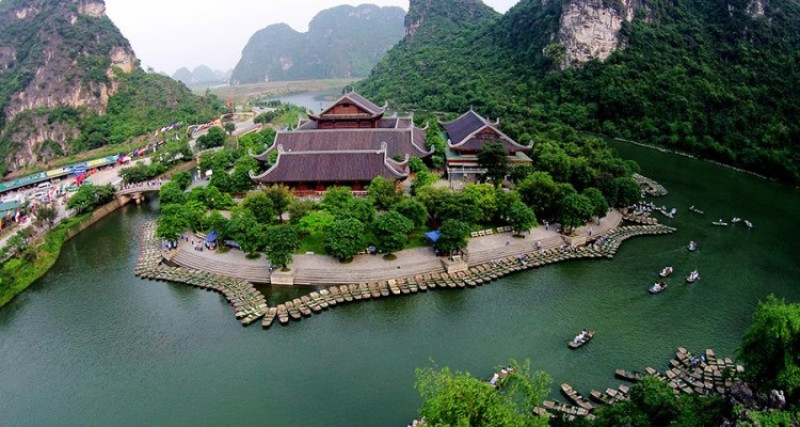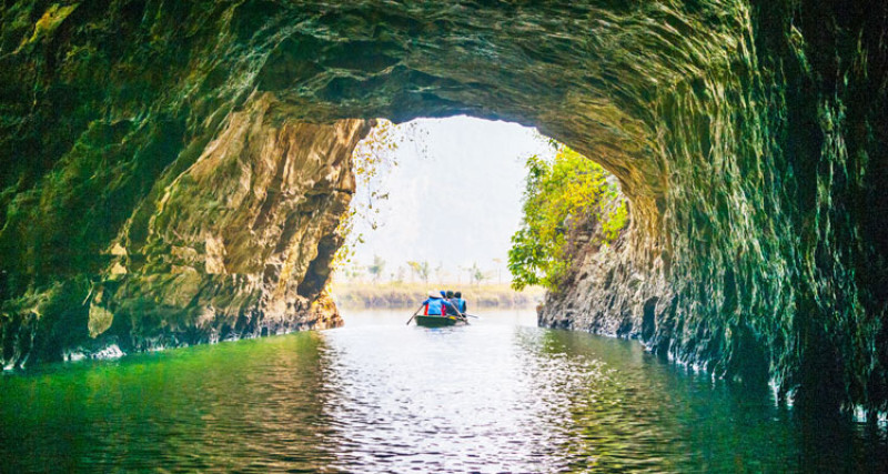 陸のハロン湾といわれる奇岩の間を流れる川をボートでゆっくり進みます。(約2時間)ギリギリ通り抜けられる高さの鍾乳洞を通ったり、静かに佇むお寺を参拝したり、水墨画の世界に迷い込んだような美しい景色をご堪能ください。