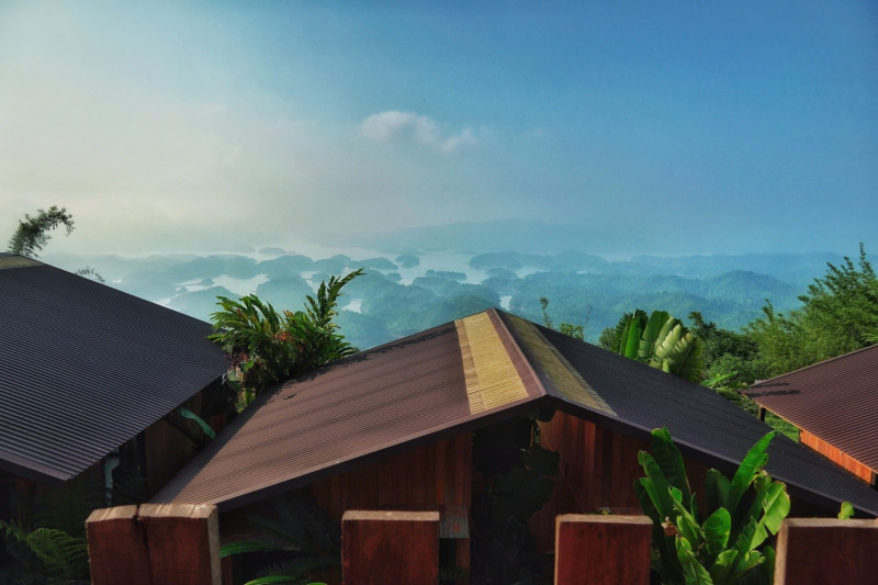 カイグイリゾートの近くの丘と山に囲まれたティンスー(瞑想合宿)にて、「陸のハロン湾」と呼ばれるタズン湾の絶景と夕陽鑑賞をお楽しみいただけます。